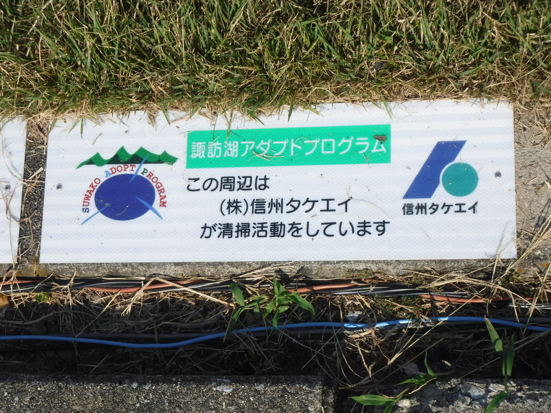 (諏訪湖アダプトプログラムに参加していることを示すプレートが、湖岸に設置されています)