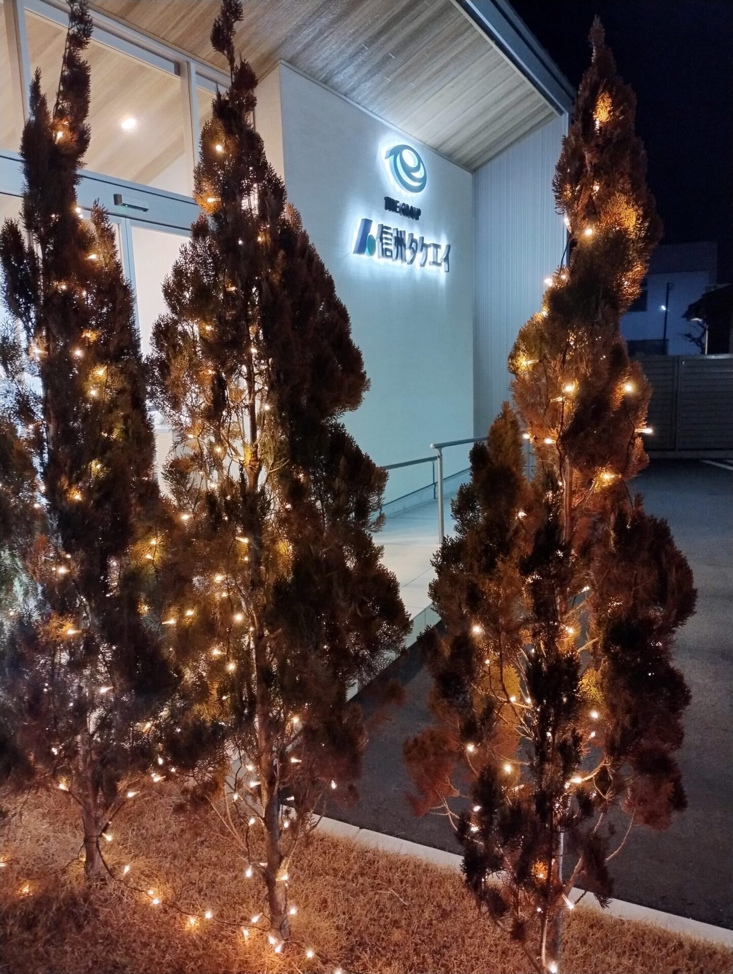 昨年に引き続き、本社正面にイルミネーションの飾り付けをしています。
