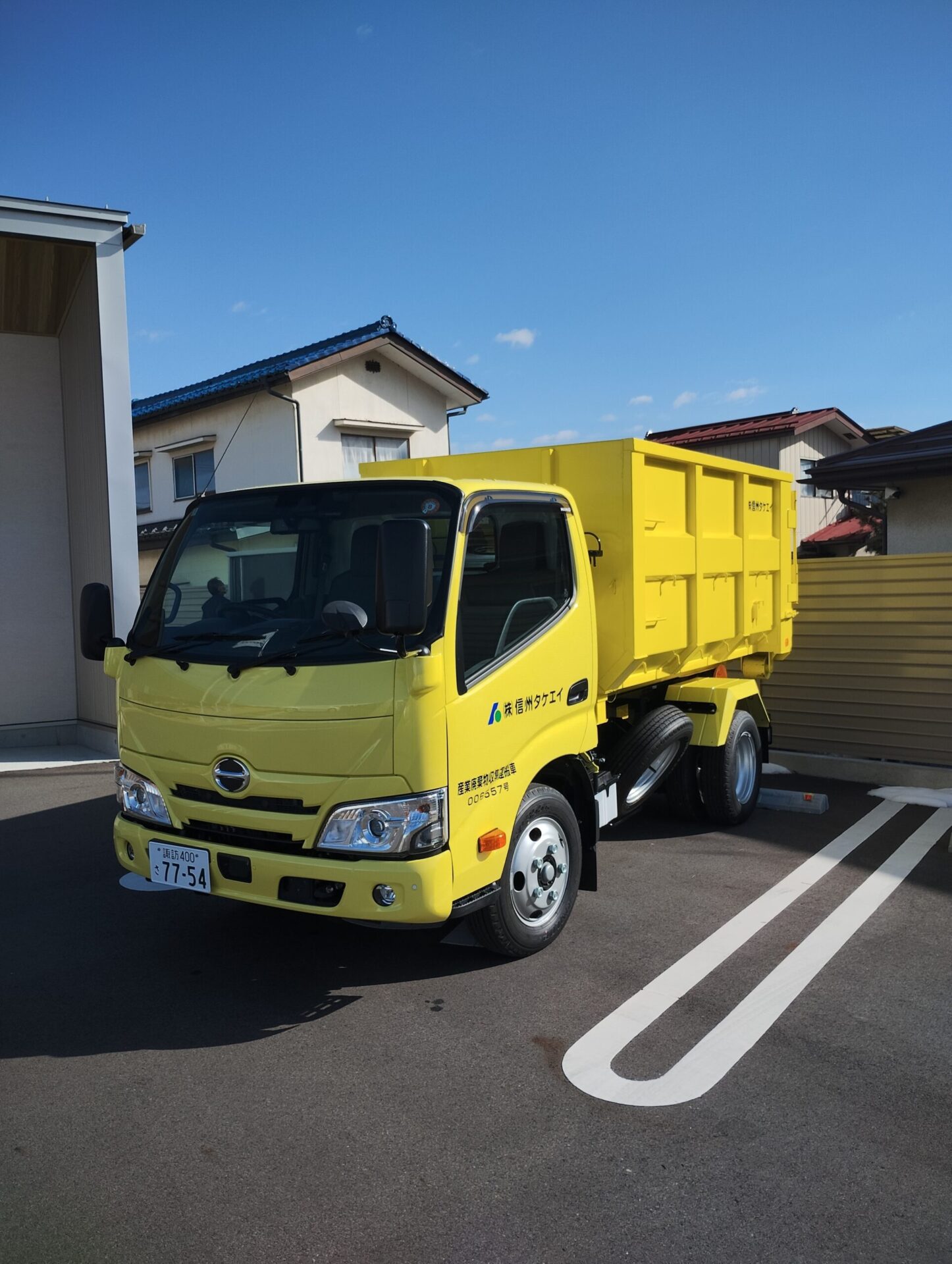 解体工事の現場では、工事後の廃棄物をこの車に載せて、当社のリサイクルセンターに運び込みます。