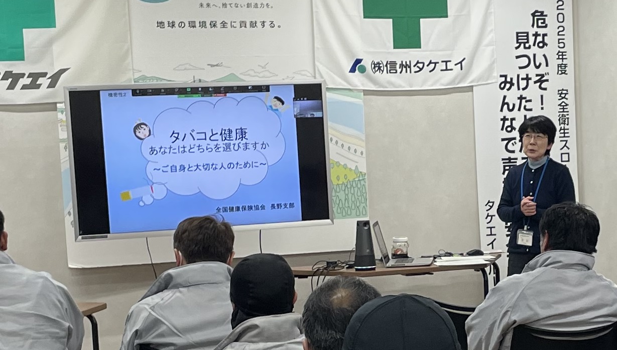 当社が推進する健康経営の一環として、社員の健康増進と全社員が快適に働ける職場環境の実現を目指し、外部より講師をお招きして、禁煙に関する社内講習会を実施しました。内容は、喫煙および受動喫煙が健康に及ぼす影響や、禁煙を成功させるための具体的なコツについてです。