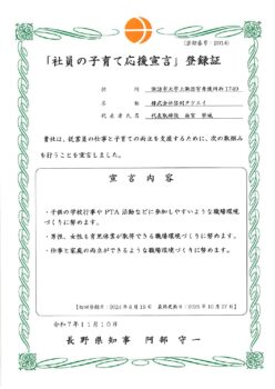 「社員の子育て応援宣言」を更新しました